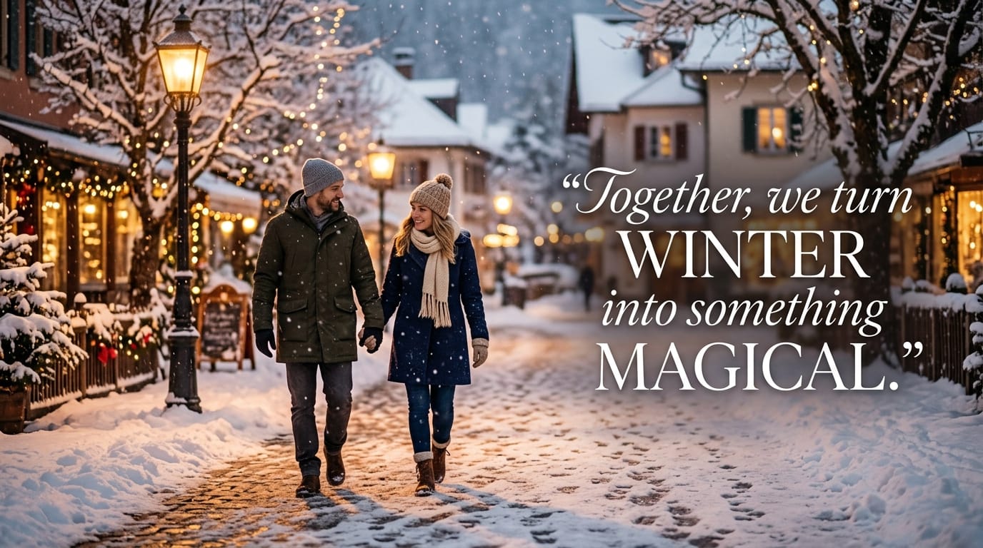 Explore 20 romantic winter quotes for couples in love. Perfect for cozy moments, captions, and sharing warmth during cold days.
