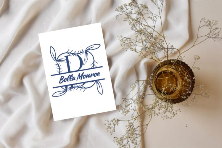 Install Ivy Whisper Split Monogram in Canva, Photoshop, Illustrator, and popular cutting apps. The smooth curves and clean split print and cut beautifully. Therefore, it works well for foil stamping, embossing, debossing, engraving, laser cutting, and vinyl. Because the stroke weight is consistent, finished pieces look neat and professional. You can prepare natural color pairs like sage and ivory, eucalyptus and cream, or moss and champagne. Then, simply change the initials or text to complete custom orders faster.